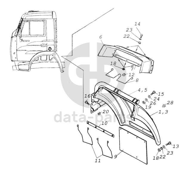 Установка задней части переднего крыла правая КамАЗ-53228, 65111