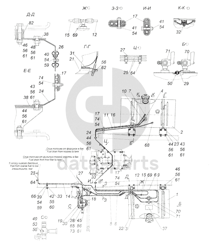 Установка топливного бака ФГОТ и топливопроводов КамАЗ-53228, 65111