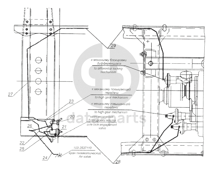 Кран включения блокировки межосевого дифференциала