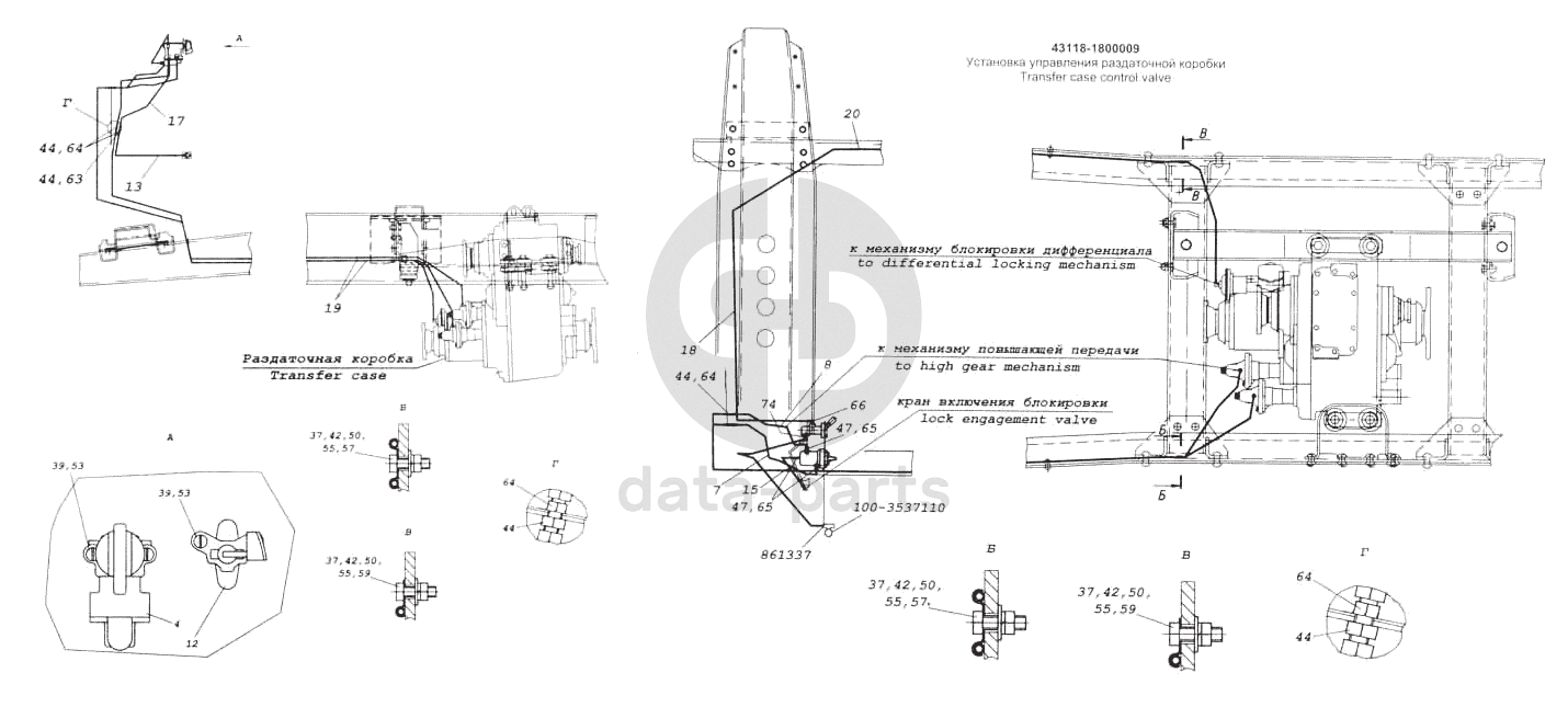 Установка управления раздаточной коробки КамАЗ-53228, 65111