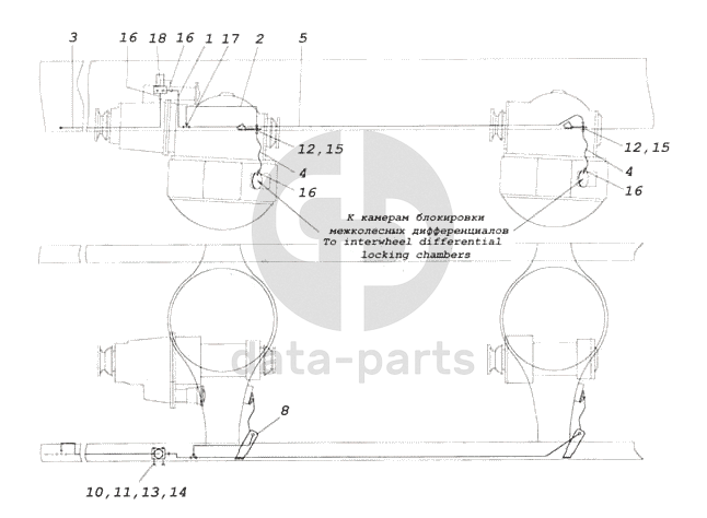 Привод блокировки межколесных дифференциалов КамАЗ-53228, 65111