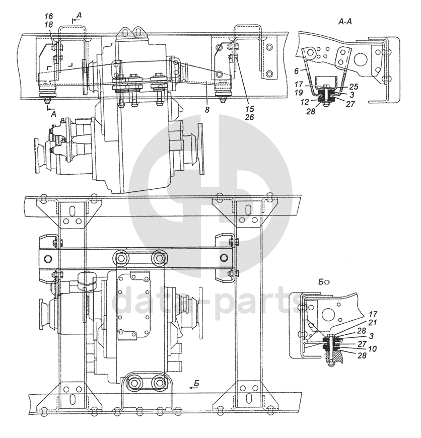 65111 -1800008 Установка крепления раздаточной коробки КамАЗ-5350 (6х6)