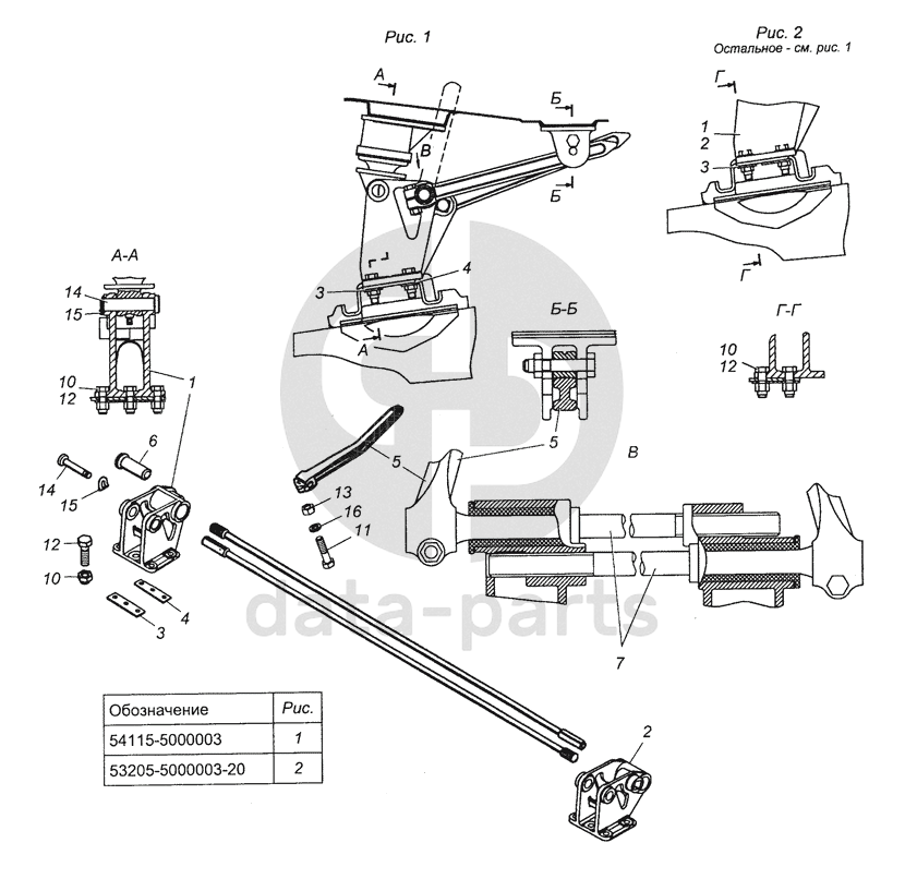 54115-5000003 Переднее крепление и механизм уравновешивания кабины