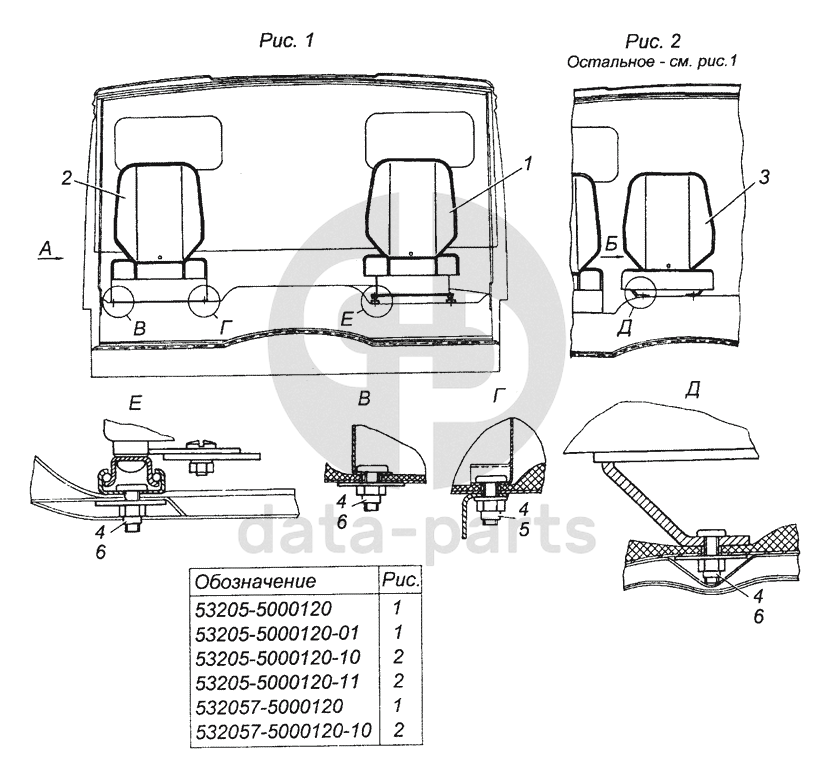 53205-5000120 Установка сидений КамАЗ-53501 (6х6)