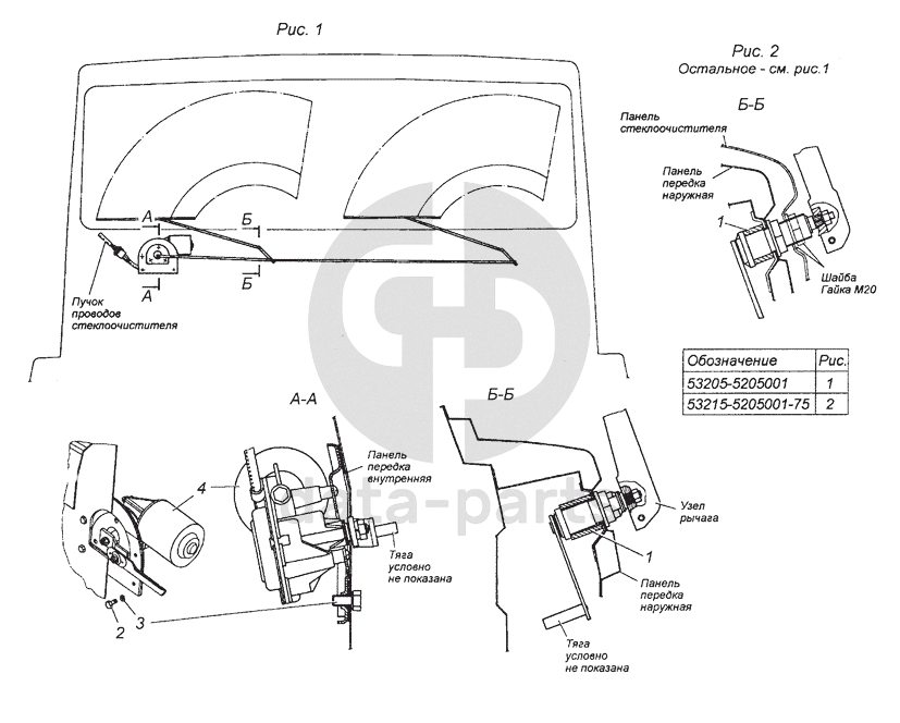 53205-5205001 Установка стеклоочистителя КамАЗ-53501 (6х6)