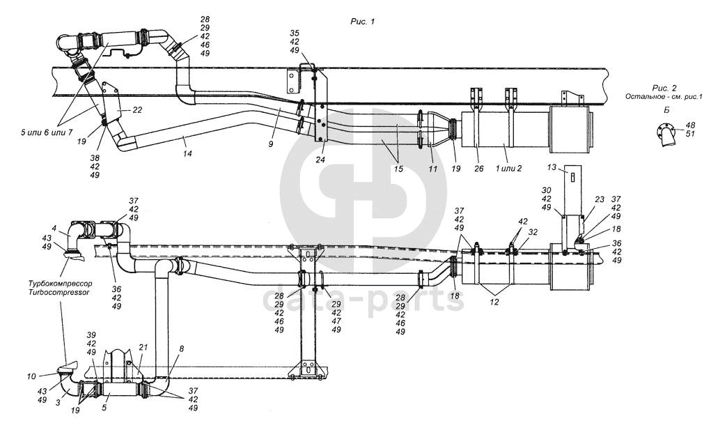 6350-1200001-10 Установка системы выпуска КамАЗ-53501 (6х6)