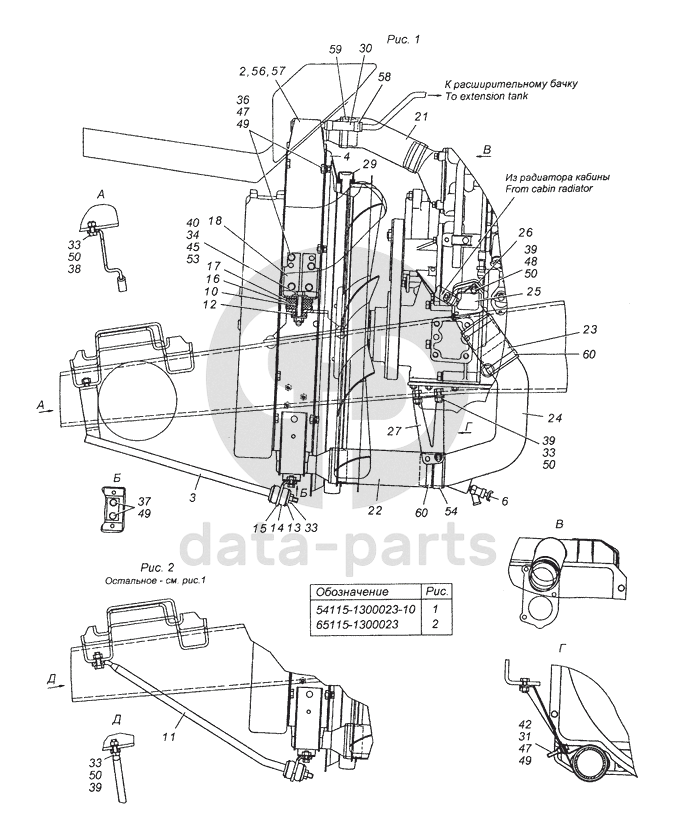 54115-1300023-10 Установка радиатора КамАЗ-53501 (6х6)