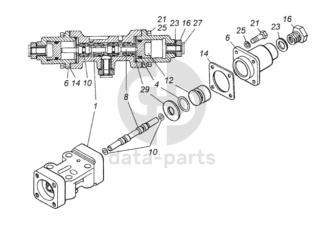 Корпус воздухораспределителя с гнездом золотника в сборе