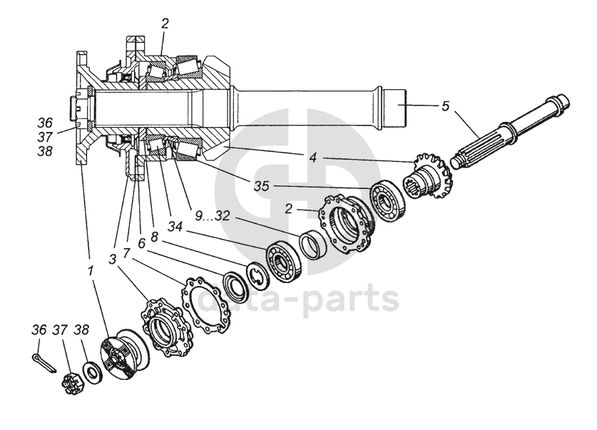 Гайка М33х1.5-6Н КАМАЗ фланца среднего моста