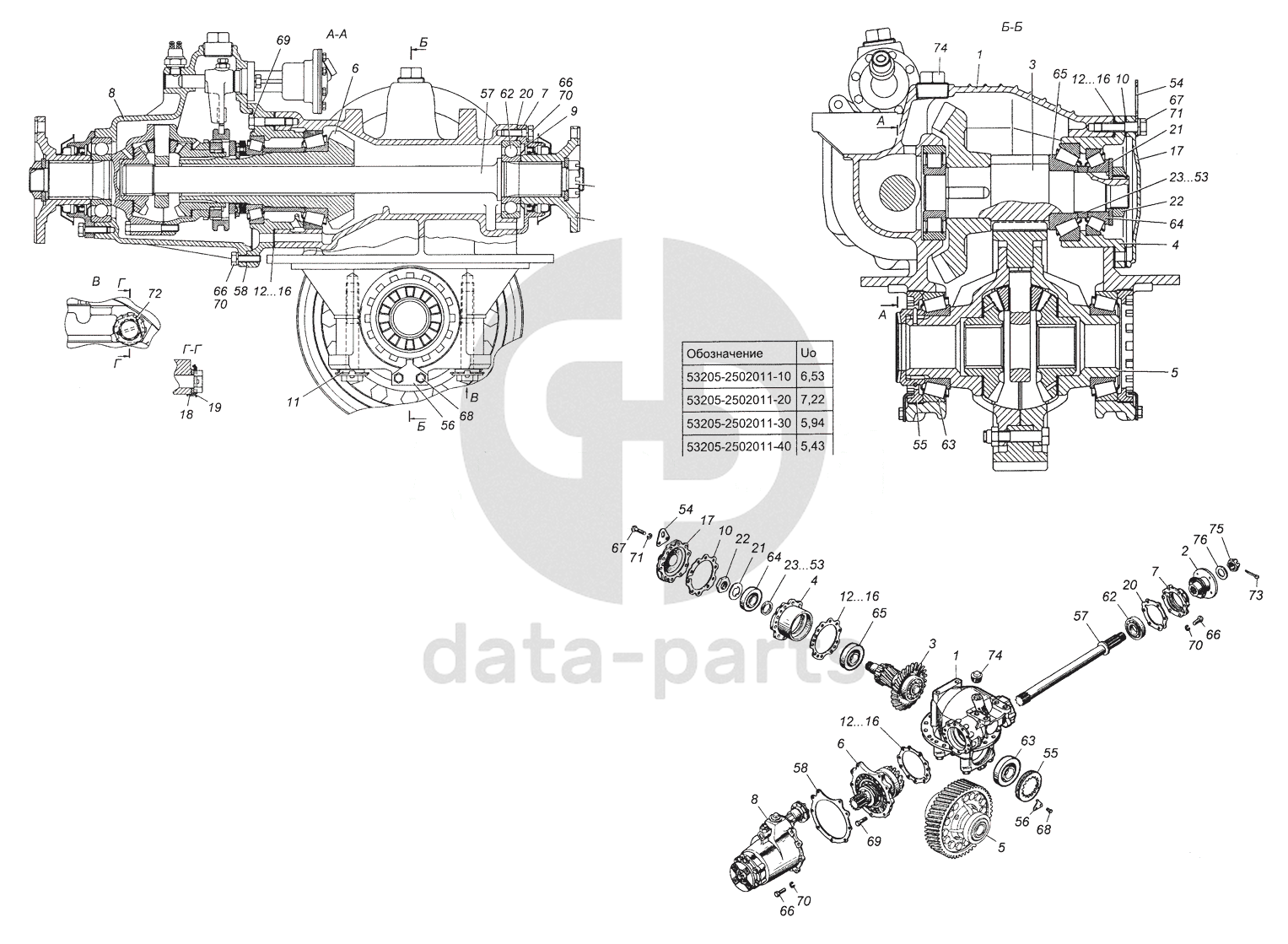 53205-2502011-10 Передача главная среднего моста КамАЗ-53501 (6х6)