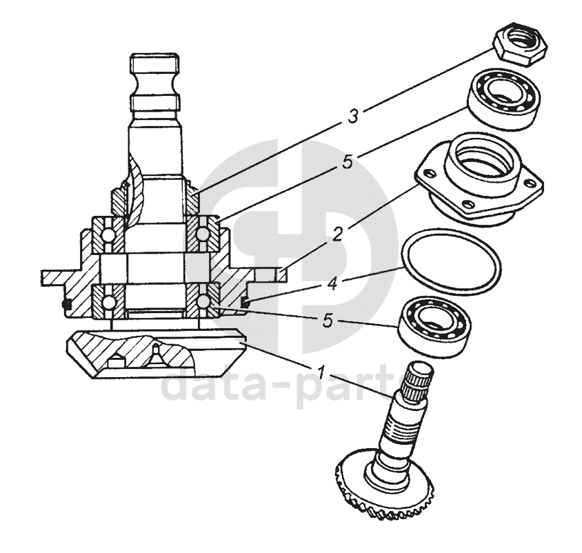 4310-3401736 Шестерня ведущая углового редуктора с корпусом в сборе КамАЗ-53501 (6х6)