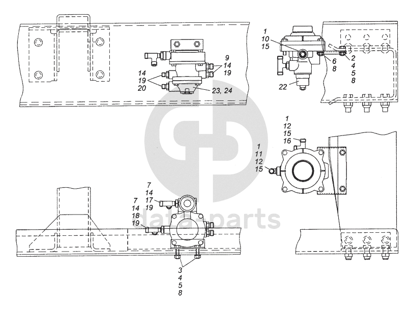 43501-3500022 Установка клапанов управления тормозами прицепа