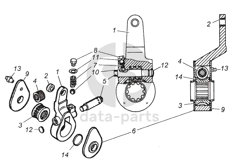 53229-3502237 Рычаг регулировочный заднего тормоза левый в сборе КамАЗ-53501 (6х6)
