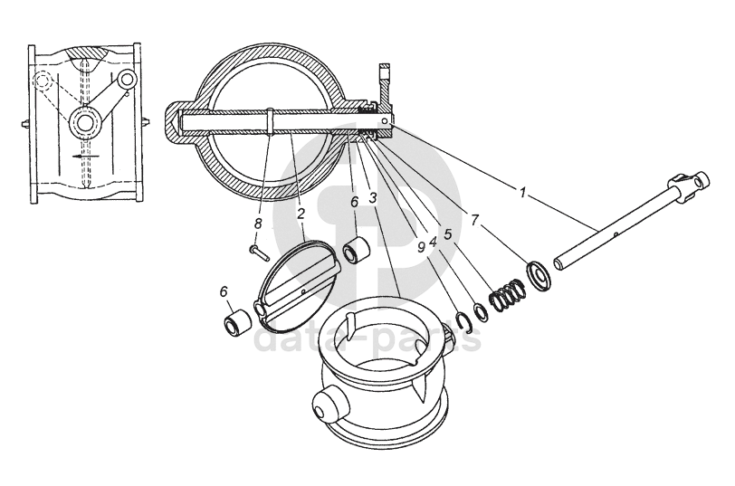 Вал заслонки в сборе