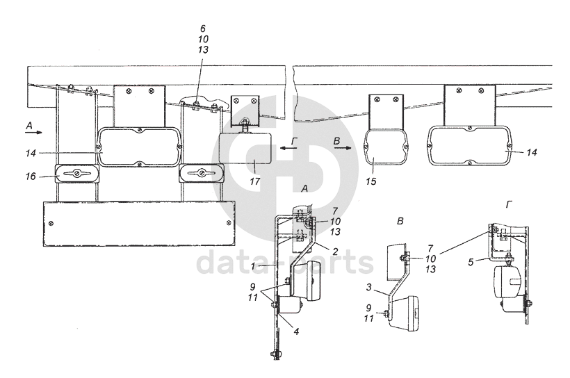 6350-3716002 Установка задних фонарей КамАЗ-53501 (6х6)
