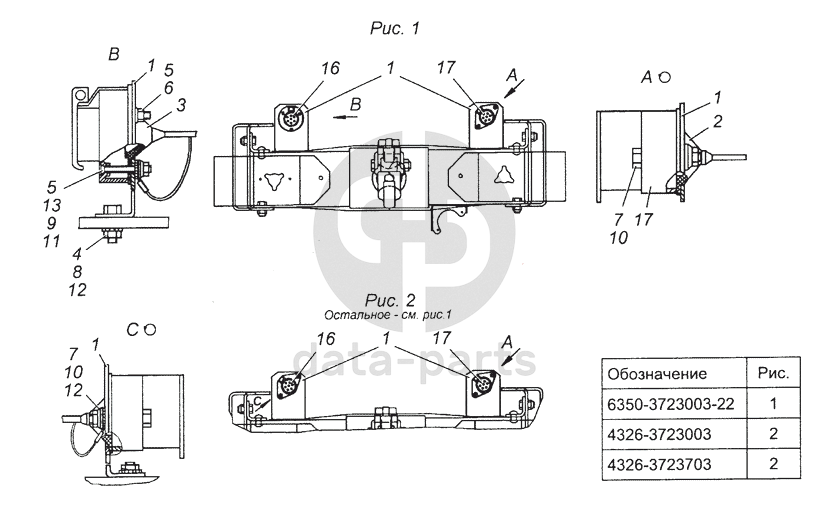 6350-3723003-22 Установка розеток прицепа КамАЗ-53501 (6х6)