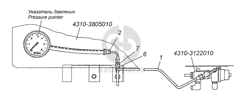 4310-3816001 Установка трубопроводов к шинному манометру КамАЗ-53501 (6х6)