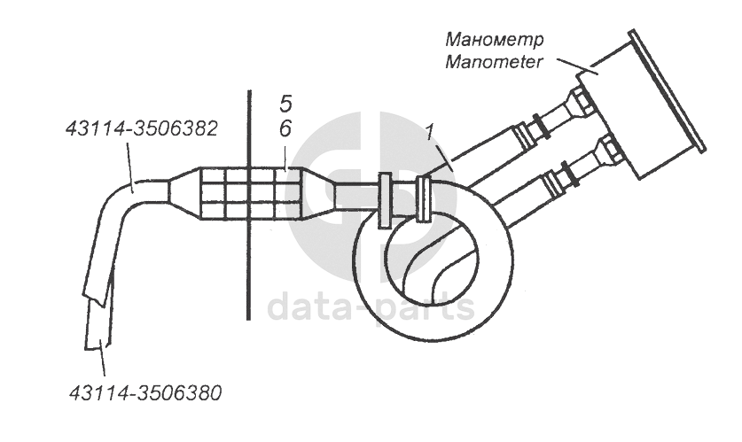 43114-3830001 Установка трубопроводов к манометру КамАЗ-53501 (6х6)