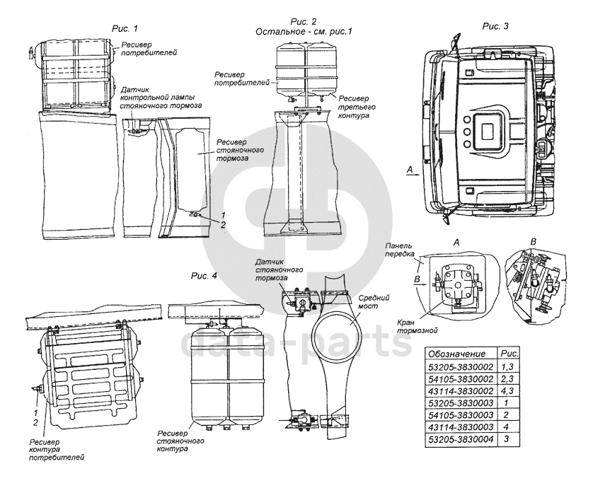 43114-3830002 Установка датчиков аварийного давления воздуха КамАЗ-53501 (6х6)