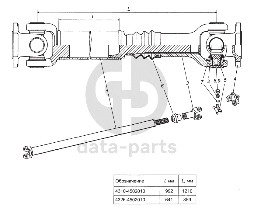 4310-4502010 Вал карданный лебедки передний КамАЗ-53501 (6х6)