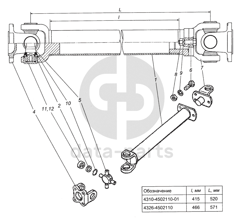 4310-4502110-01 Вал карданный лебедки задний КамАЗ-53501 (6х6)