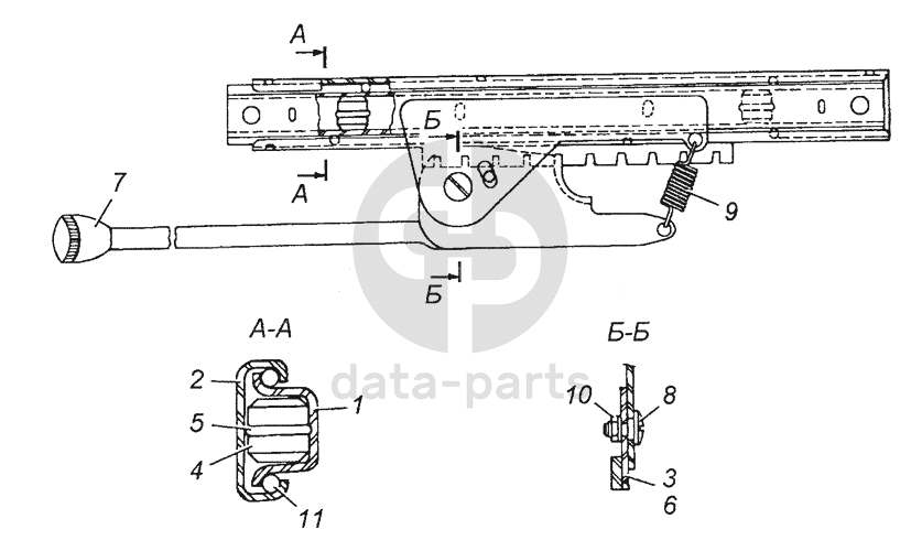 Направляющая механизма продольного перемещения сиденья верхняя в сборе
