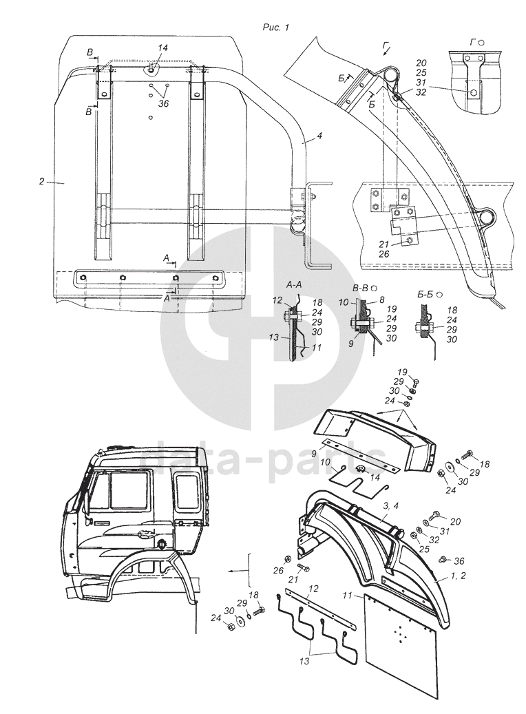 6350-8403009 Установка задней части переднего крыла КамАЗ-53504 (6х6)