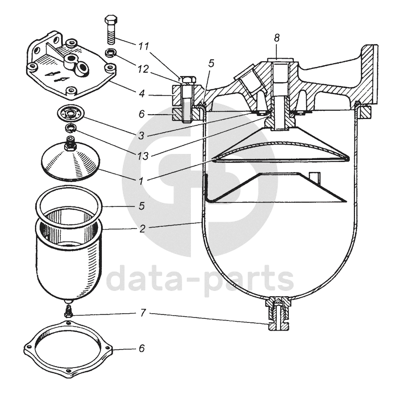 740.1105010-1 Фильтр грубой очистки топлива (ФГОТ) в сборе КамАЗ-53504 (6х6)