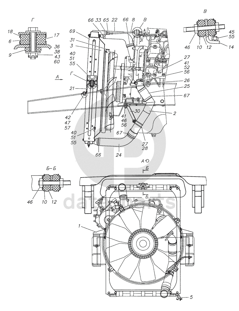 6350-1300023-10 Установка радиатора КамАЗ-53504 (6х6)