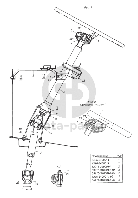 5425-3400014 Установка колонки рулевого управления КамАЗ-53504 (6х6)