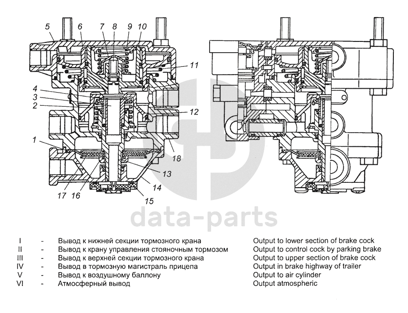 6024-3522010 Клапан управления тормозами прицепа с двухпроводным приводом в сборе КамАЗ-53504 (6х6)