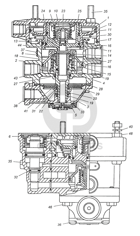 25.3522210 Клапан управления тормозами прицепа с клапаном обрыва в сборе КамАЗ-53504 (6х6)