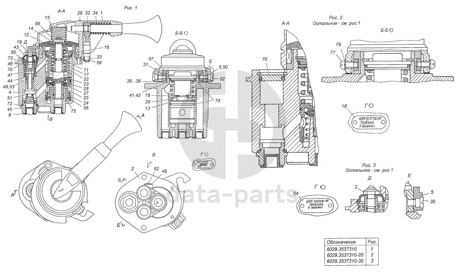 6029-3537310 Кран тормозной с ручным управлением в сборе