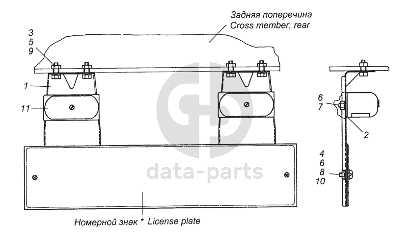 54115-3717001-18 Установка фонарей освещения номерного знака КамАЗ-53504 (6х6)