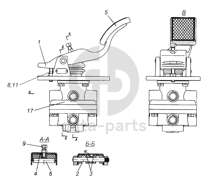 Кран тормозной двухсекционный с педалью КамАЗ-5360