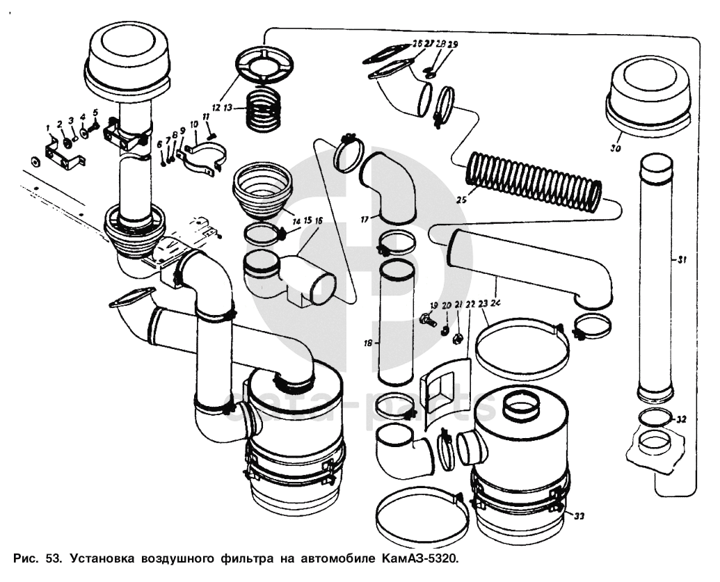 Установка воздушного фильтра на автомобиле КамАЗ-5320
