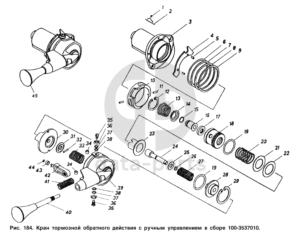Кран тормозной обратного действия с ручным управлением в сборе