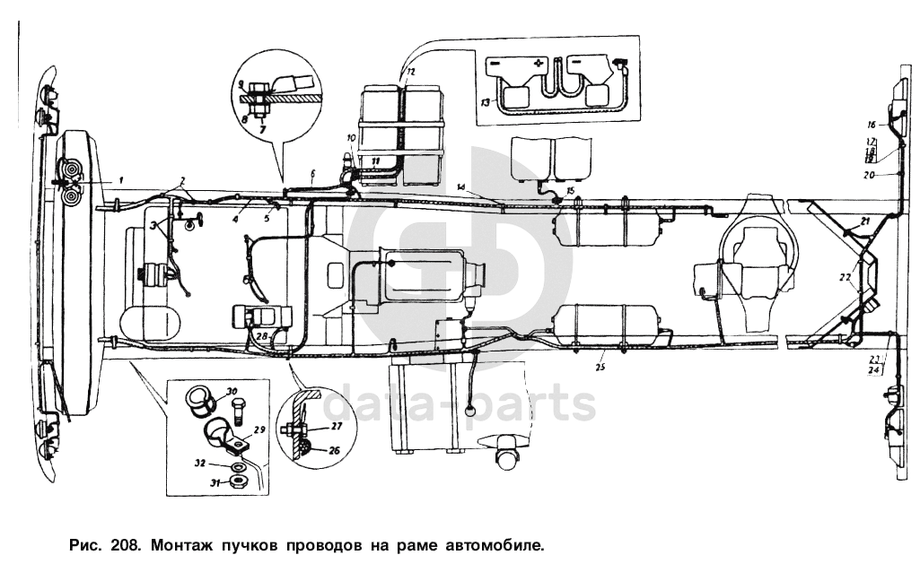 Монтаж пучков проводов на раме автомобиля КамАЗ-5410