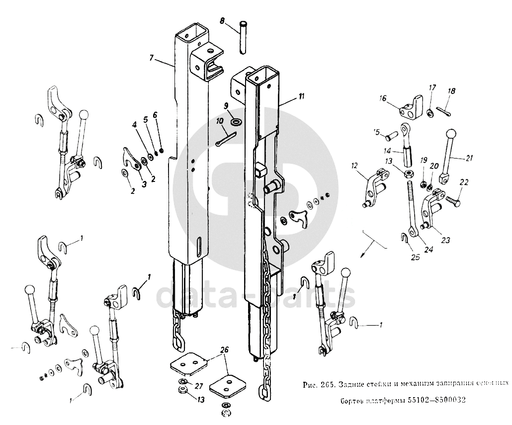 Задние стойки и механизм запирания основных бортов платформы 55102-8500032