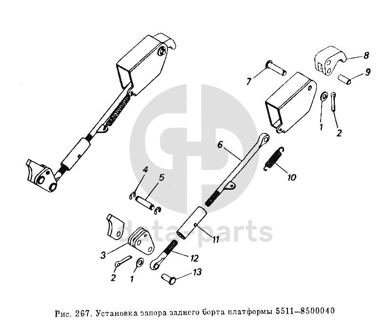 Установка запора заднего борта платформы 5511-8500040 КамАЗ-54112