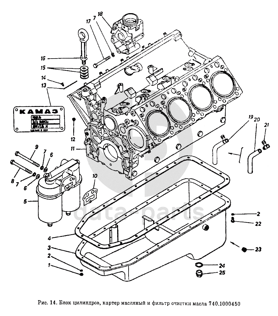 Блок цилиндров, картер масляный и фильтр очистки масла КамАЗ-54112