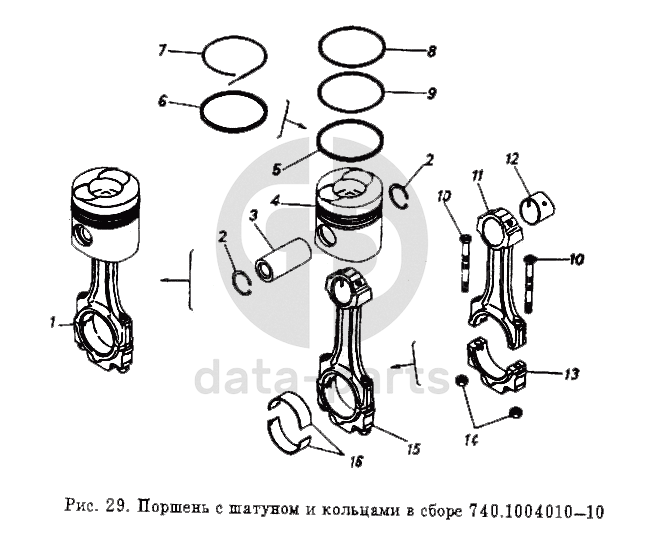 Поршень с шатуном и кольцами в сборе КамАЗ-54112