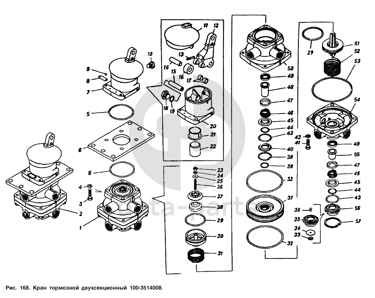 Кран тормозной двухсекционный КамАЗ-54112