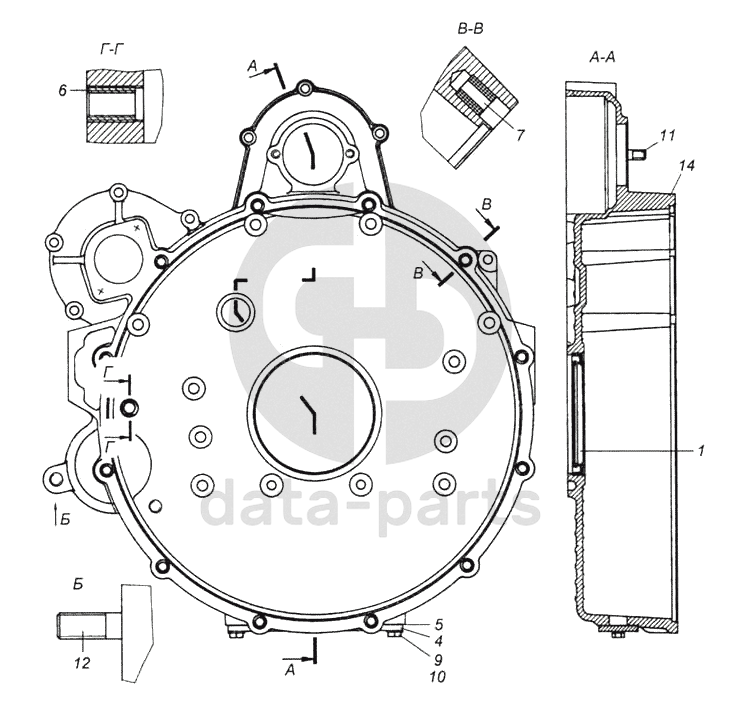 Картер КАМАЗ-ЕВРО-2 3 маховика в сборе