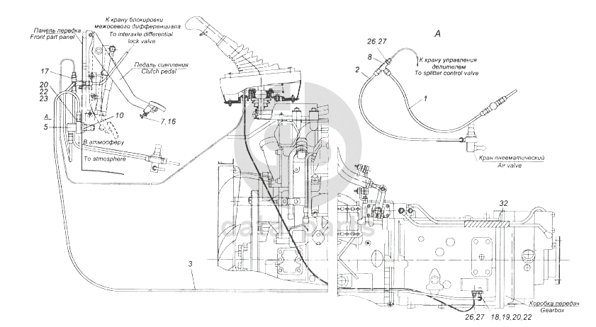 Установка пневмопривода управлением переключения передач КамАЗ-5460