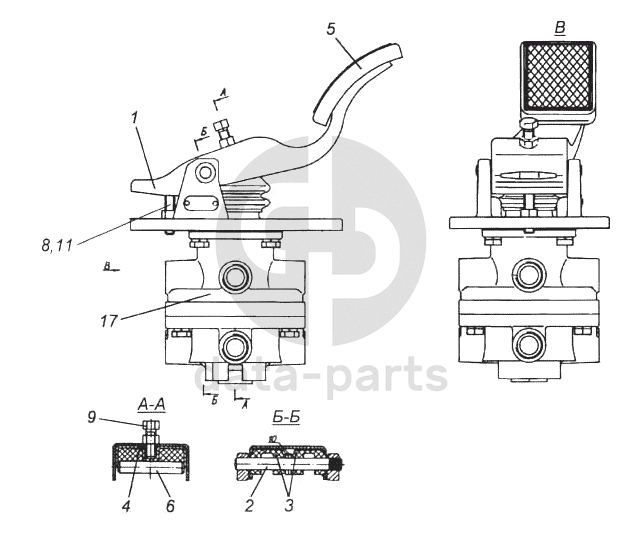 Кран тормозной двухсекционный с педалью