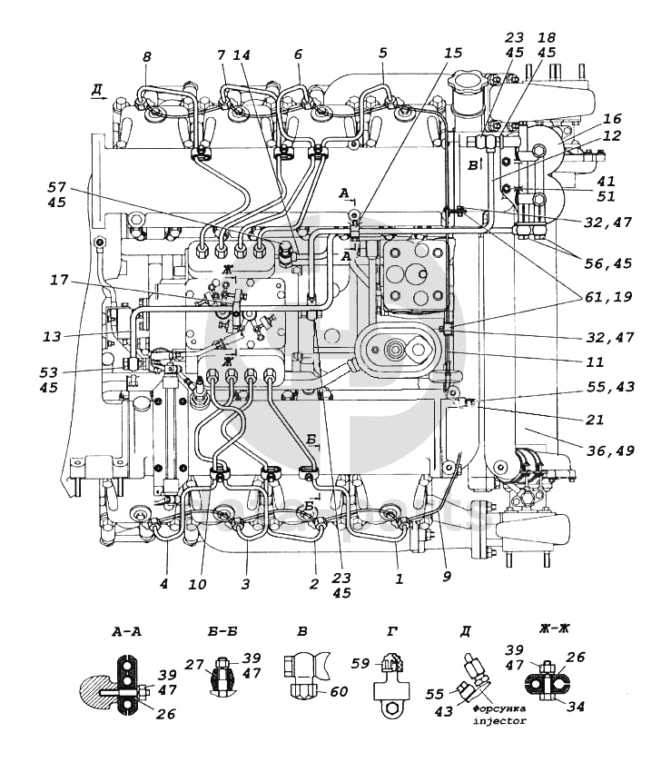 Трубка топливная КАМАЗ-ЕВРО-2 ТНВД 2-й секции