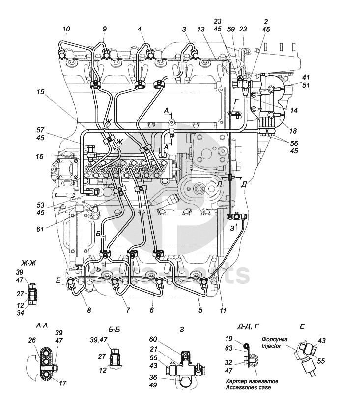 Трубка топливная КАМАЗ-ЕВРО дренажная форсунок правая