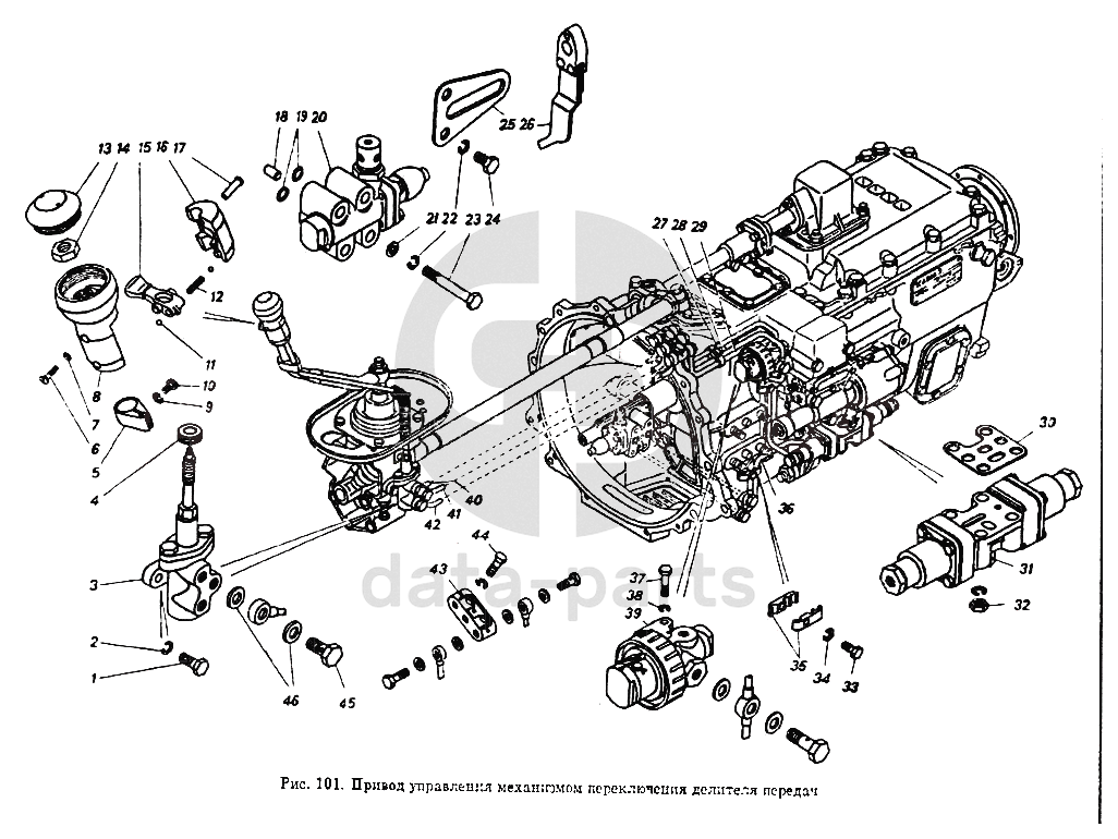 Привод управления механизмом переключения делителя передач КамАЗ-55102