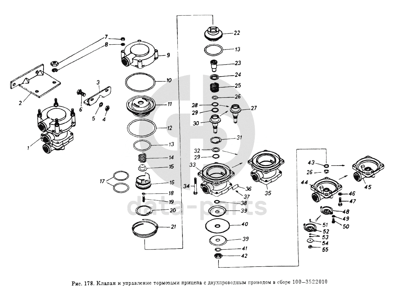 Клапан и управление тормозами прицепа с двухпроводным приводом в сборе КамАЗ-55102
